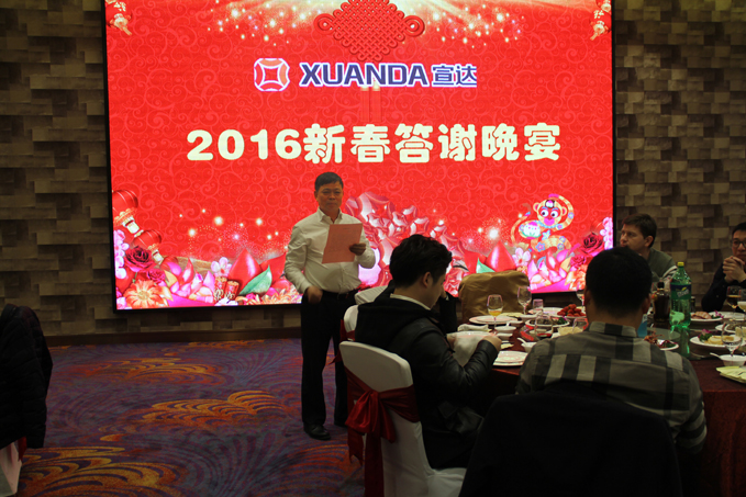 在會后的答謝晚宴上,葉際宣董事長再次發(fā)表致辭,他在致辭中指出:在過去的2015年,在各位銷售精英和公司各部門的共同努力下,公司的市場營銷打開了新的局面,創(chuàng)造了新的業(yè)績。經濟工作會議也給大家?guī)砹烁鞣N經驗總結和成果分享,為我們征戰(zhàn)2016年,傳遞了信心和力量!2016,我們有了新的期待和新的展望。葉董最后向各位營銷精英和各位同事表示了衷心的感謝和真誠的祝愿。他說:感謝你們在過去的一年里,努力工作、銳意進取和精誠奉獻!祝愿大家在新的一年,能夠繼續(xù)攜手合作、共圖發(fā)展、勇于創(chuàng)新、再創(chuàng)輝煌!祝愿我們共同的事業(yè),在2016年有新的發(fā)展、新的收獲、新的突破!