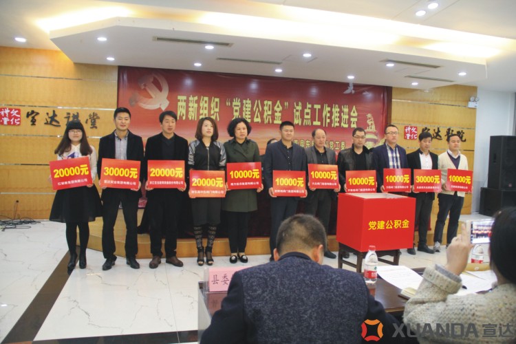 本網(wǎng)訊 3月27日上午,由永嘉縣東甌街道黨工委主辦,宣達(dá)集團(tuán)黨委承辦的永嘉縣兩新組織“黨建公積金”試點(diǎn)工作推進(jìn)會(huì)在宣達(dá)集團(tuán)隆重開幕,來自永嘉縣委兩新科,東甌街道、橋頭鎮(zhèn)、橋下鎮(zhèn)、江北街道兩新工委等有關(guān)單位以及兩新組織代表共四十多人參加會(huì)議,中共永嘉縣委組織部副部長(zhǎng)、兩新工委書記潘健,永嘉工業(yè)園區(qū)黨委書記、東甌街道黨工委書記劉超軍等應(yīng)邀出席并發(fā)表講話。