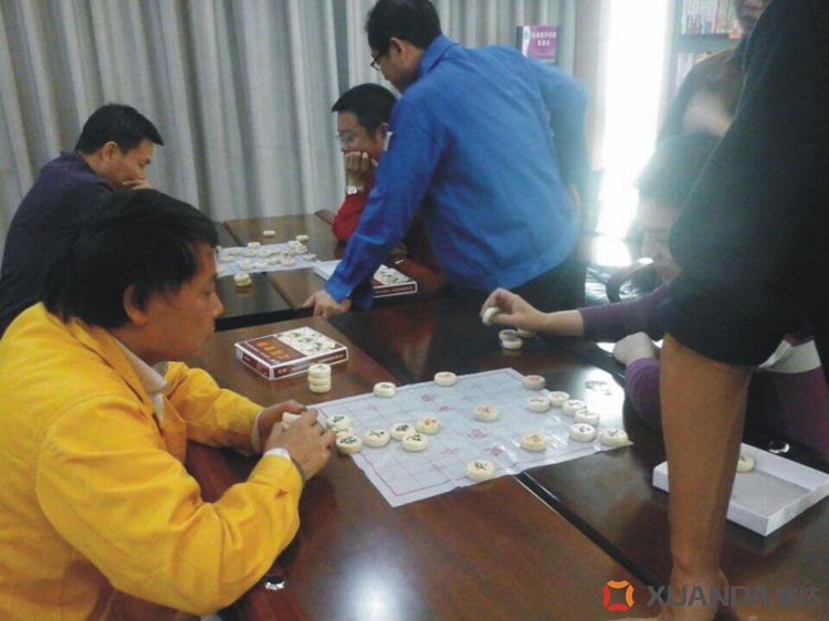 如果說籃球賽是最能體現(xiàn)陽剛力量的比賽的話,那么,運動會中的棋類比賽算是最能體現(xiàn)陰柔的智慧的“體育賽事”了。職工文化中心棋牌室內(nèi),由我們的美女書記、集團黨委第二支部書記葉楠梅組織的棋類比賽在這里悄無聲息地開始了。周圍一片寂靜,只聽到偶爾移動棋子的聲音。選手們慢條慢理,冥思苦想,如老僧入定,與熱火朝天的籃球賽場面形成了一個鮮明的對比。最終,集團公司行政中心陳丐海、銷售部余偉俊分別獲得了象棋比賽、五子棋比賽的冠軍。