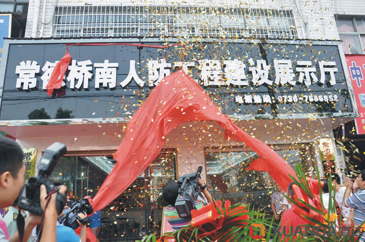 區(qū)人大主任、工程指揮長楊君和宣達集團董事長葉際宣共同為橋南人防工程建設指揮部、常德宣達置業(yè)有限公司、常德橋南人防工程建設展示廳揭牌。
