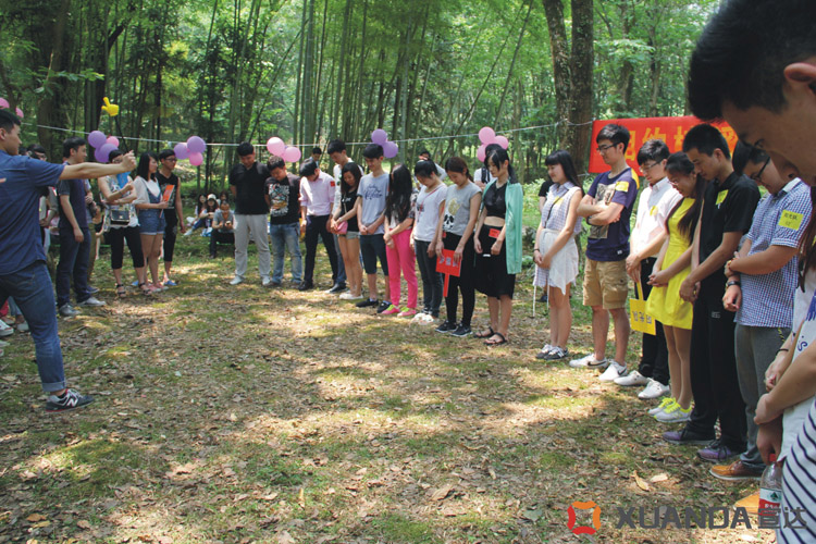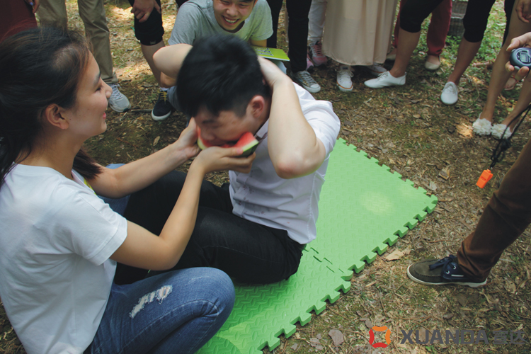 “請大家排好隊(duì)伍,圍成一個圈……”個人游戲“一元五角”在主持人的帶動下開始了。游戲分兩輪,每組每輪派 4 人參加( 2 男 2 女),男生代表一元,女生代表五角。游戲開始放音樂,大家圍成一個全圈往前走。音樂停止,主持人報一個金額。所有人要在最短時間內(nèi)組隊(duì),湊足金額,落單的人淘汰,比賽結(jié)果記入個人的成績中。這場游戲讓大家精神高度緊張,笑聲此起彼伏。
