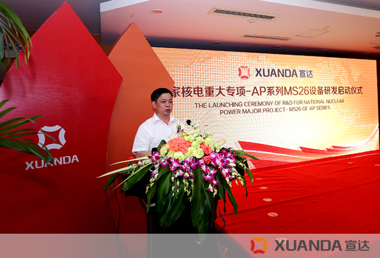 葉際宣董事長致歡迎辭。他首先代表宣達集團董事會對儀式的成功舉行表示祝賀,對各級領導以及社會各界一直以來對此事的關懷和支持表示感謝。接著,他介紹了宣達在科技研發(fā)尤其在核電領域方面的實力,并就AP系列ms26設備研發(fā)項目任務的艱巨指出:“能夠承擔如此重大的項目,是我們宣達集團無上的光榮。我們深知要想完成如此重大項目并非易事,但我們不為困難所嚇倒,我們要迎難而上,以滿腔熱血、滿懷豪情迎接成功的到來!”